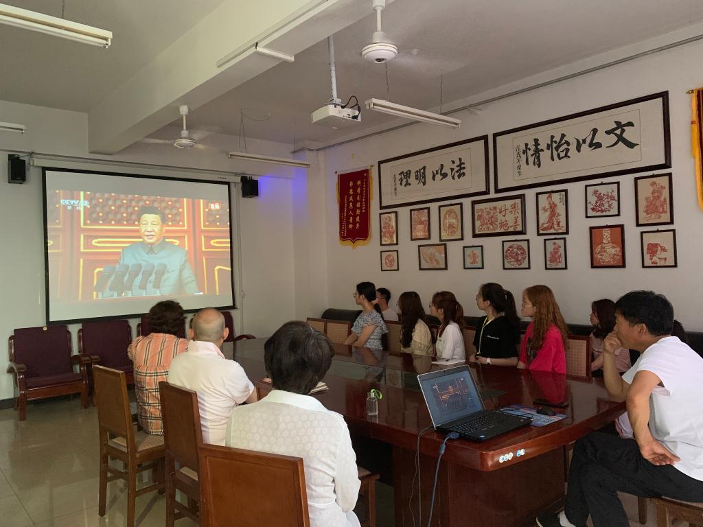 7月1日上午8时,公司党委在开发区校区815会议室组织师生代表通过新华网集中收看庆祝中国共产党成立100周年庆祝大会,认真学习习近平总书记“七一”重要讲话。