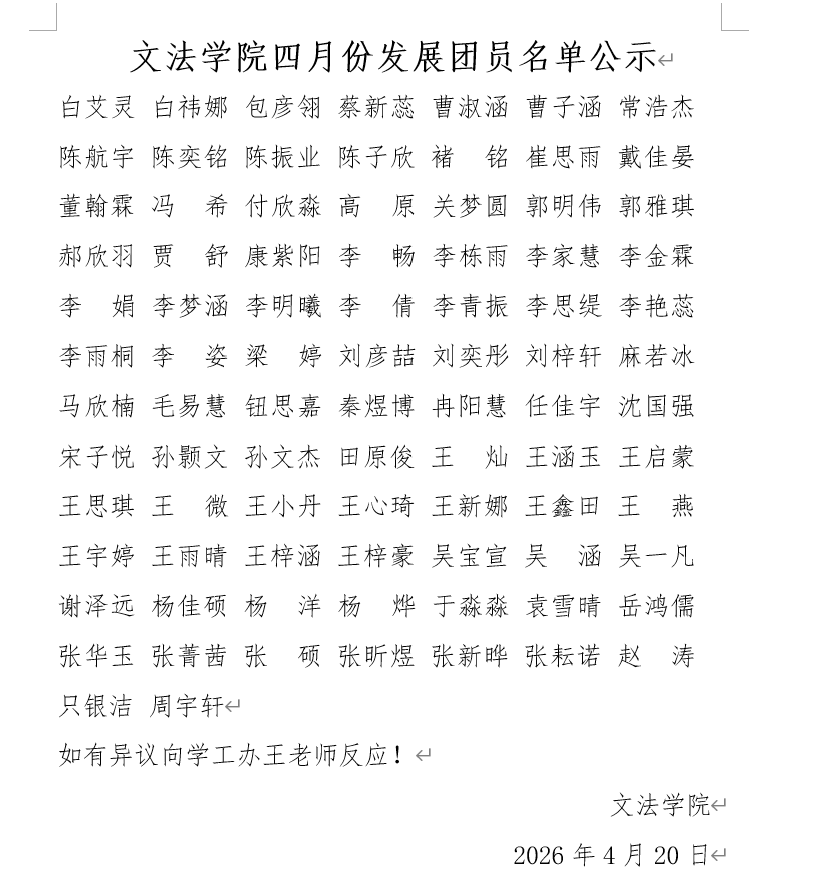 2026年太阳成集团tyc234cc四月份发展团员名单公示