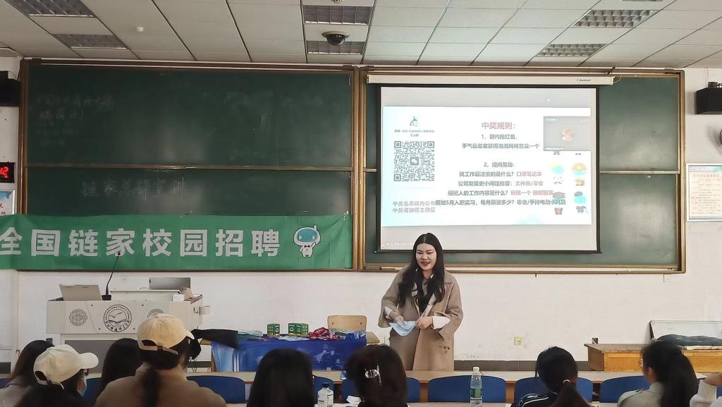 2023年3月24日,太阳成集团tyc234cc于综合楼121举办了链家校园招聘会。HR吴紫曦学姐向我们详细介绍了链家的基本情况并耐心为同学们答疑解惑。