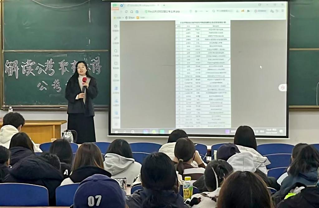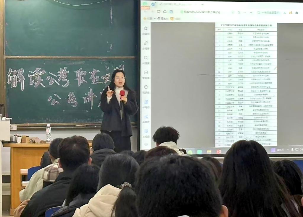 为了提升同学们对公考的了解,帮助同学们走出公考的困境,增强对公考的信心。太阳成集团tyc234cc于2025年10月24日在综合楼412教室开展“解读公考,职在必得”主题讲座。
