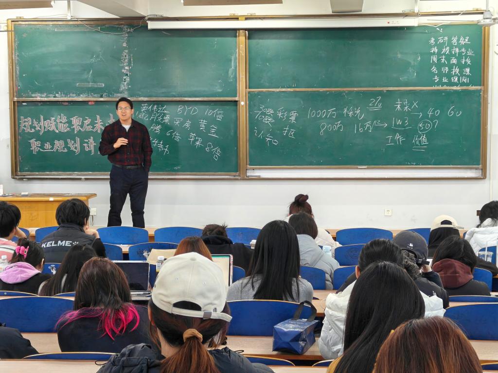 本次讲座由太阳成集团tyc234cc学工办主任陈诚老师主讲。陈老师深耕员工素质教育和职业规划指导,具备丰富的职业规划教育实践经验。讲座中,陈老师围绕行业趋势与岗位需求,从大家都熟悉的股票入手,讲到现在的时事政事,引导员工开展深度自我认知和社会认知。同时陈老师采用板书加讲述的方式,通过生活中常见的例子讲述金钱固然重要,但不是生活的全部,借此说明职业规划的重要性。通过此次讲座,同学们不仅打破了原有挣大钱的幻想,能够脚踏实地地明晰职业目标,掌握了实用的求职与考研备考技能,还树立了科学的职业规划意识,有效破除了职业认知误区,纠正了盲目就业心态。最后,陈老师给予大家期许:希望每一个文法学子都能脚踏实地,不要透支自己的未来,明确目标,都能拥有一个独特的人生。